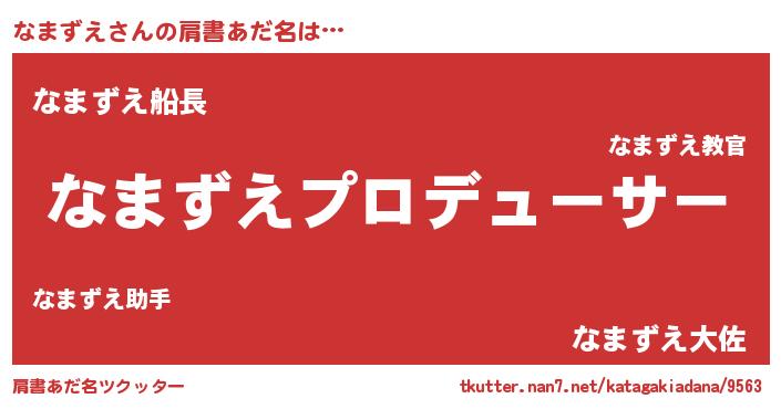 | 男性向けラノベタイトル風あだ名 | 『はたらくなまずえさま!』 |