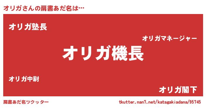 | ヘコむあだ名 | 『オリぷりん』『オリガ(苦笑)』 |
