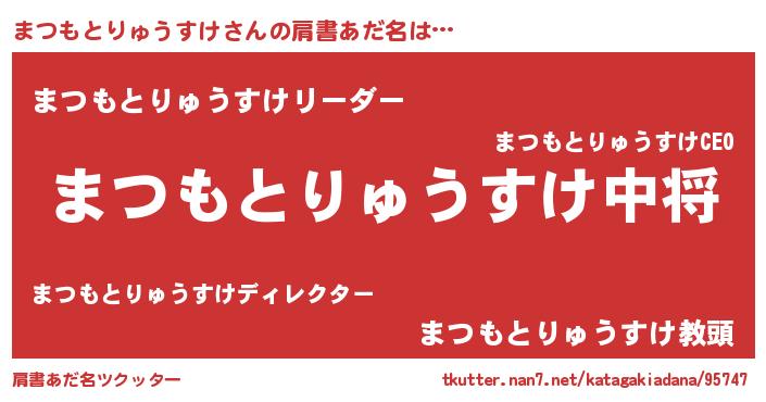 | ポケモン風あだ名 | 『マツキング』『ヒマツモトリュウスケ』 |