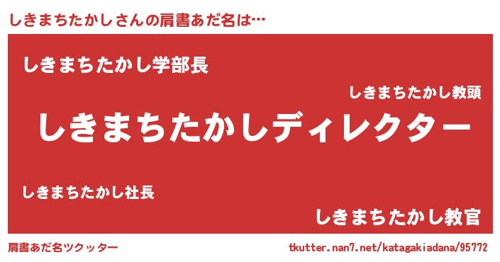 | 男性向けラノベタイトル風あだ名 | 『しきまちたかしに滅ぼされるだけの簡単なお仕事です』 |