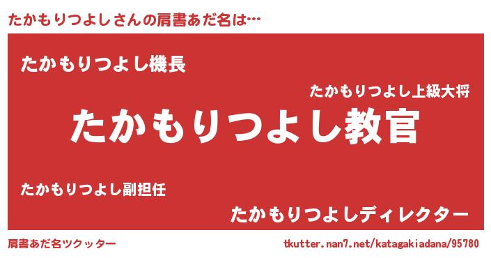 | 意味不明あだ名 | 『住所不定無職たかもりつよし(86歳)』 |