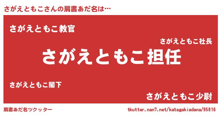 | 意味不明あだ名 | 『永久保存さがえともこ』 |