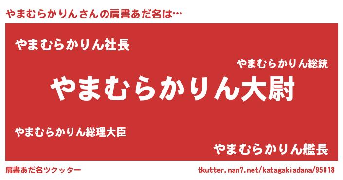 | 女子向けラノベタイトル風あだ名 | 『やまむらかりんの玉の輿計画!』 |