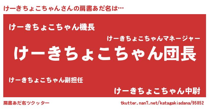 | ヘコむあだ名 | 『けーお』『けーきちょこちゃん(遠い目)』 |