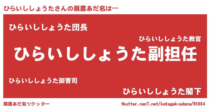 | ヒーロー風カッコイイあだ名 | 『ネオヒライシショウタ』『幻影騎士ヒラ』 |