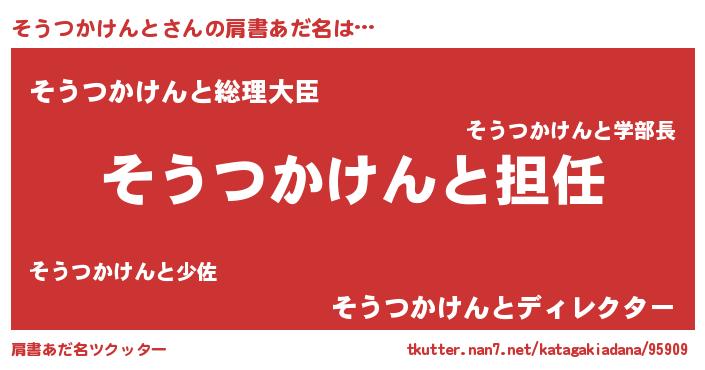 | ヘコむあだ名 | 『そうつかけんと(苦笑)』『酢こんぶ』 |