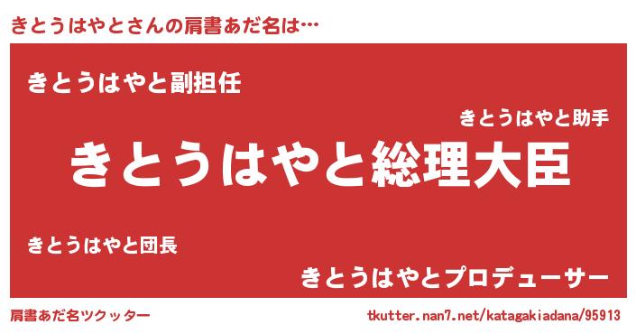 | 男性向けラノベタイトル風あだ名 | 『やはりきとうはやとの青春ラブコメはまちがっている 』 |