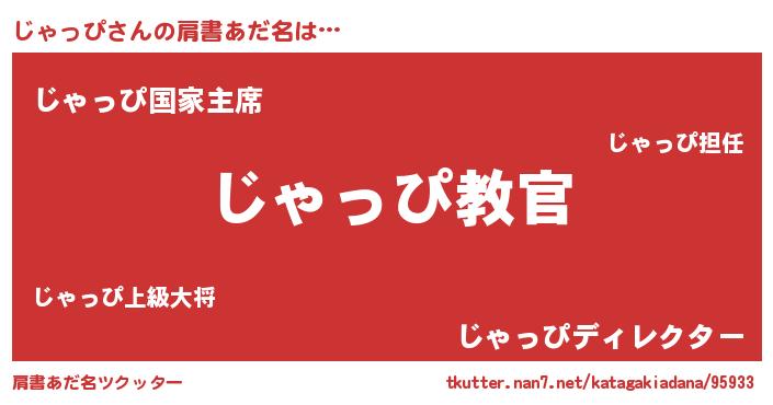 | 男性向けラノベタイトル風あだ名 | 『この素晴らしい世界にじゃっぴを!』 |