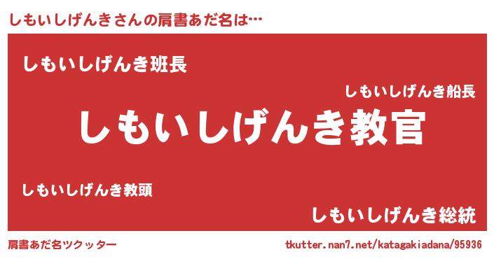 | 意味不明あだ名 | 『住所不定無職しもいしげんき(84歳)』 |