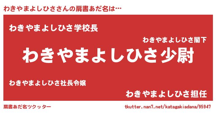 | ヘコむあだ名 | 『わきやまよしひさ(笑)』『わきにゅー』 |