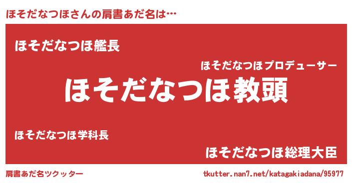 | ヘコむあだ名 | 『ほそだなつほ(笑)』『酢こんぶ』 |