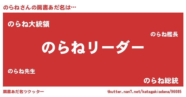 | 意味不明あだ名 | 『とにかく怪しいのらね』『自称のらね』 |