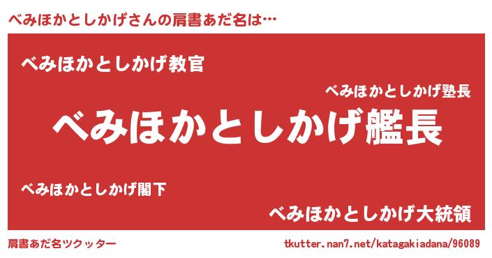 | 胡散臭い通販商品みたいなあだ名 | 『あなたにだけ特別に提供する限定10本のレアな日本酒…その名も「べみほかとしかげ」』 |