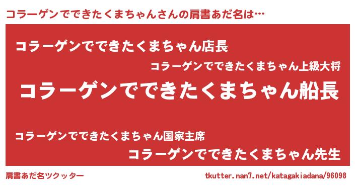 | 男性向けラノベタイトル風あだ名 | 『緋弾のコラーゲンデデキタクマチャン』 |