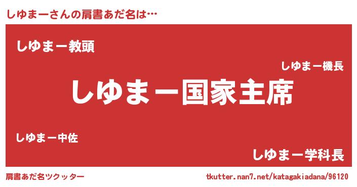 | ヒーロー風カッコイイあだ名 | 『ウルトラしゆまーマン』『ネオシユマー』 |