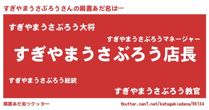 | ヒーロー風カッコイイあだ名 | 『スーパースギヤマウサブロウ』 |