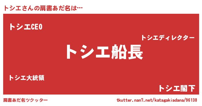 | ヒーロー風カッコイイあだ名 | 『スーパートシエ』『最強戦士トシエ』 |