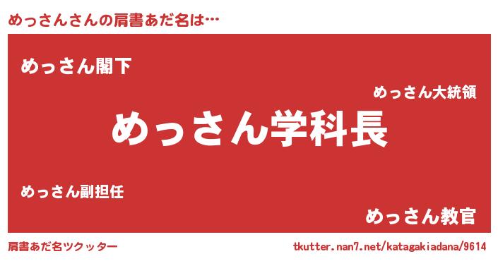| ヘコむあだ名 | 『豆乳』『めっさん(笑)』『めっにー』 |