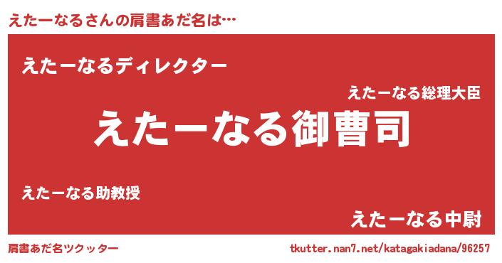 女子向けラノベタイトル風あだ名 | 『(仮)えたーなるのやんごとなき事情』 |