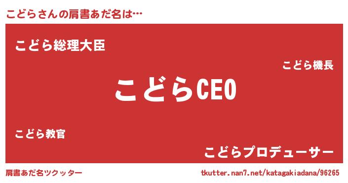 | 男性向けラノベタイトル風あだ名 | 『こどらの憂鬱』『はたらくこどらさま!』 |