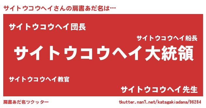 | 男性向けラノベタイトル風あだ名 | 『やはりサイトウコウヘイの青春ラブコメはまちがっている 』 |