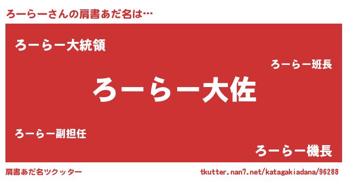 | ヘコむあだ名 | 『つくし』『ろーお』『ろーにゅー』 |