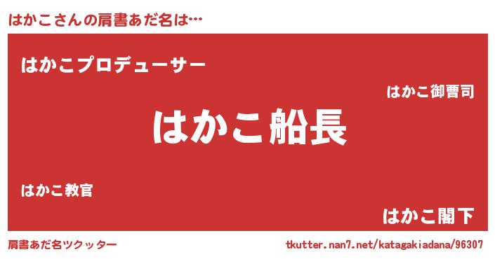 | 欧米人風あだ名 | 『はかこ・ステッグマイヤー』 |