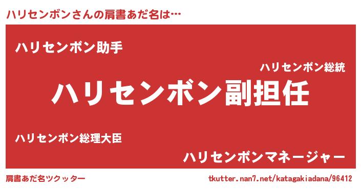 | 女子向けラノベタイトル風あだ名 | 『ハリセンボンの契約王妃』 |
