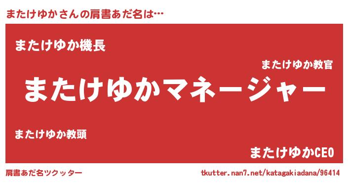 | 恥ずかしいあだ名 | 『プリティーまたけゆか』『またちん』 |