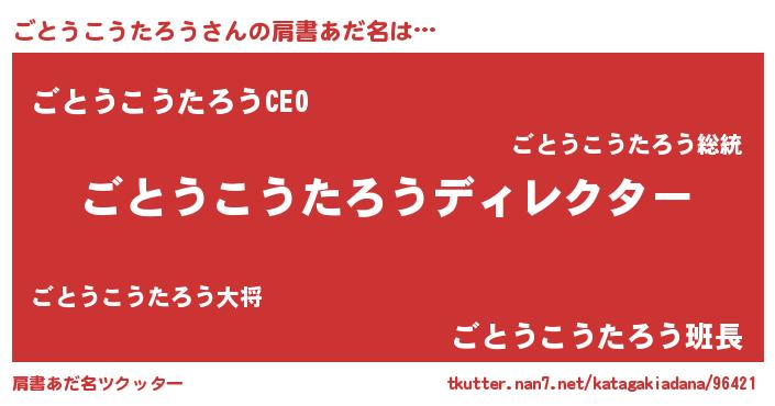 | 男性向けラノベタイトル風あだ名 | 『ごとうこうたろうに滅ぼされるだけの簡単なお仕事です』 |