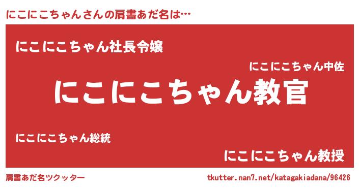 | 女子向けラノベタイトル風あだ名 | 『にこにこちゃんが死なない童話 林檎のにこにこちゃんの診療簿』 |