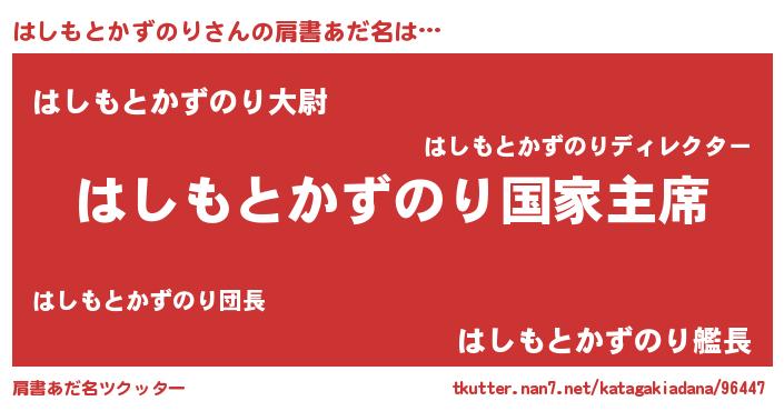 | 欧米人風あだ名 | 『はしもとかずのりクリステル』 |