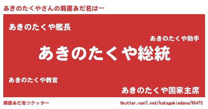 | 意味不明あだ名 | 『自称あきのたくや』 |