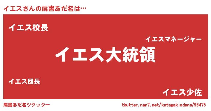 | ファンタジー風あだ名 | 『エターナルイエスー』『イエディッシュ』 |