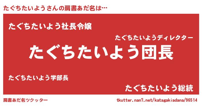 | 女子向けラノベタイトル風あだ名 | 『たぐちたいようは平凡を望む』 |