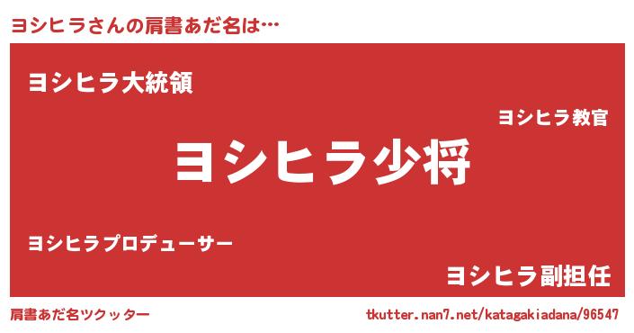 | 男性向けラノベタイトル風あだ名 | 『ヨシヒラ~年齢イコール彼女いない歴の魔法使い~』 |