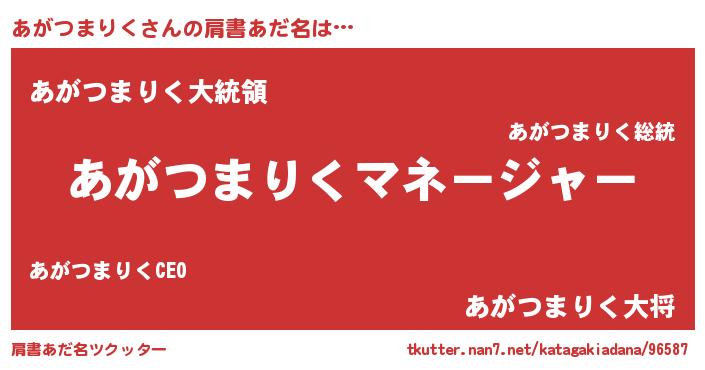 | 欧米人風あだ名 | 『アンジェラ・あがつまりく』 |