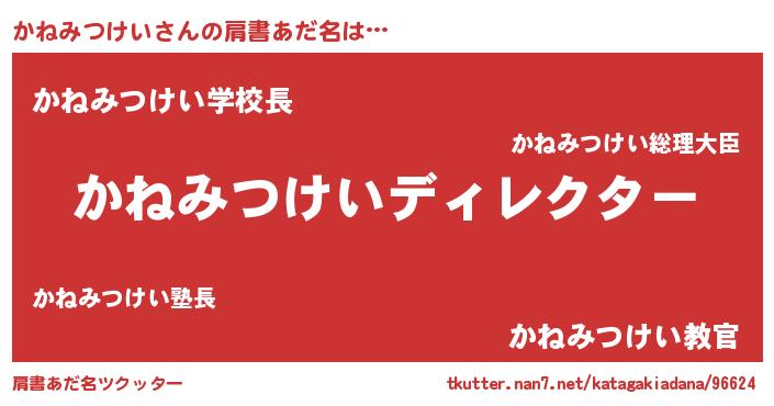 | 男性向けラノベタイトル風あだ名 | 『かねみつけいに滅ぼされるだけの簡単なお仕事です』 |