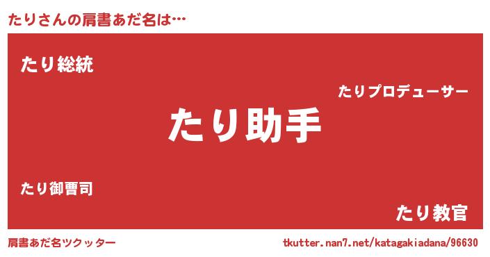 | ヘコむあだ名 | 『たりにゅー』『たりっ子』『豆乳』 |