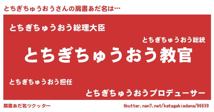 | ポケモン風あだ名 | 『トーチイ』『トチギダネ』 |