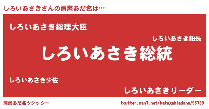 | 意味不明あだ名 | 『自称しろいあさき』 |