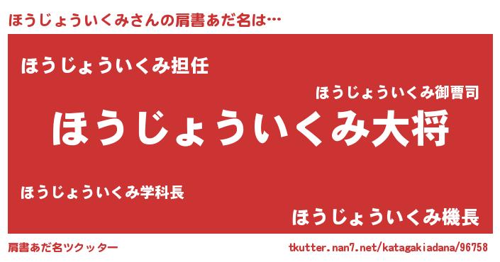 | 男性向けラノベタイトル風あだ名 | 『転生したらほうじょういくみだった件』 |