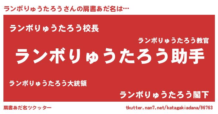 | 女子向けラノベタイトル風あだ名 | 『ランボりゅうたろう恋絵巻』 |
