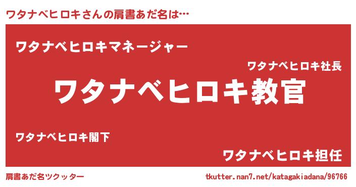 | 男性向けラノベタイトル風あだ名 | 『この素晴らしい世界にワタナベヒロキを!』 |