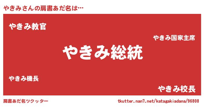 | 意味不明あだ名 | 『自称やきみ』『住所不定無職やきみ(3歳)』 |
