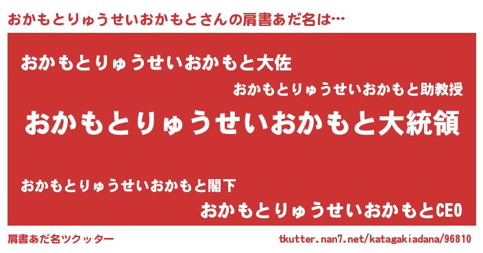 | 女子向けラノベタイトル風あだ名 | 『おかもとりゅうせいおかもとの婚約者』 |