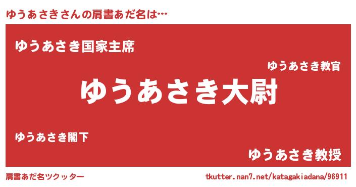 | 女子向けラノベタイトル風あだ名 | 『ゆうあさきの玉の輿計画!』 |