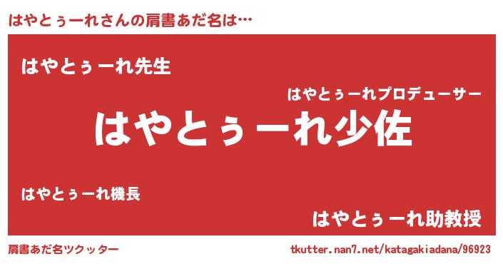 | ヘコむあだ名 | 『はやとぅーれ(小並感)』『つくし』 |