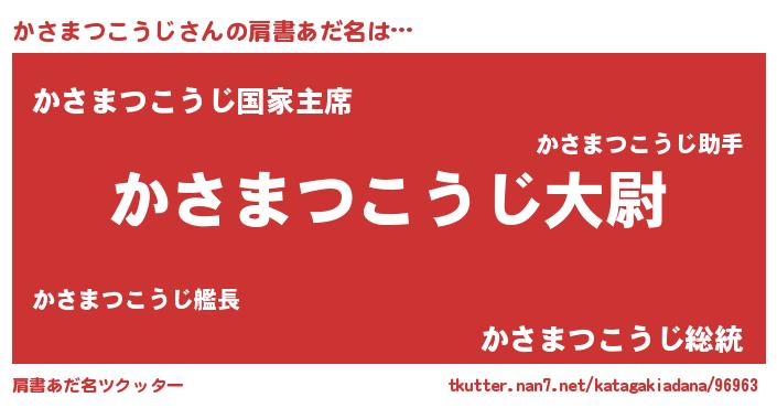 | 男性向けラノベタイトル風あだ名 | 『カサマツコウジスレイヤー』 |