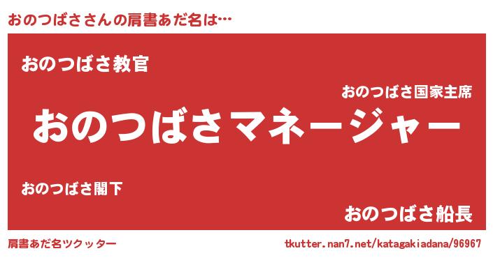 | 欧米人風あだ名 | 『アンジェラ・おのつばさ』 |